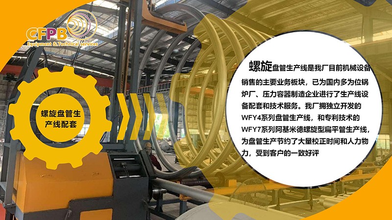 螺旋盤管生產(chǎn)線是我廠目前機(jī)械設(shè)備銷售的主要業(yè)務(wù)板塊,已為國(guó)內(nèi)多為位鍋爐廠、壓力容器制造企業(yè)進(jìn)行了生產(chǎn)線設(shè)備配套和技術(shù)服務(wù)。我廠擁獨(dú)立開(kāi)發(fā)的WFY4系列盤管生產(chǎn)線,和擁有專利技術(shù)的WFY7系列阿基米德螺旋型扁平管生產(chǎn)線,為盤管生產(chǎn)節(jié)約了大量校正時(shí)間和人力物力,受到客戶的一致好評(píng)。